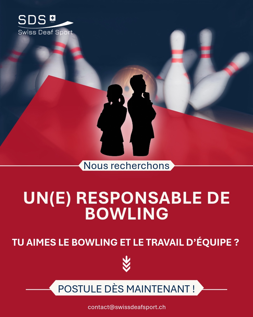 Tu aimes le bowling, l’organisation d’événements et le travail d’équipe ? Postule dès maintenant ou contacte-nous pour plus d’infos : contact@swissdeafsport.ch