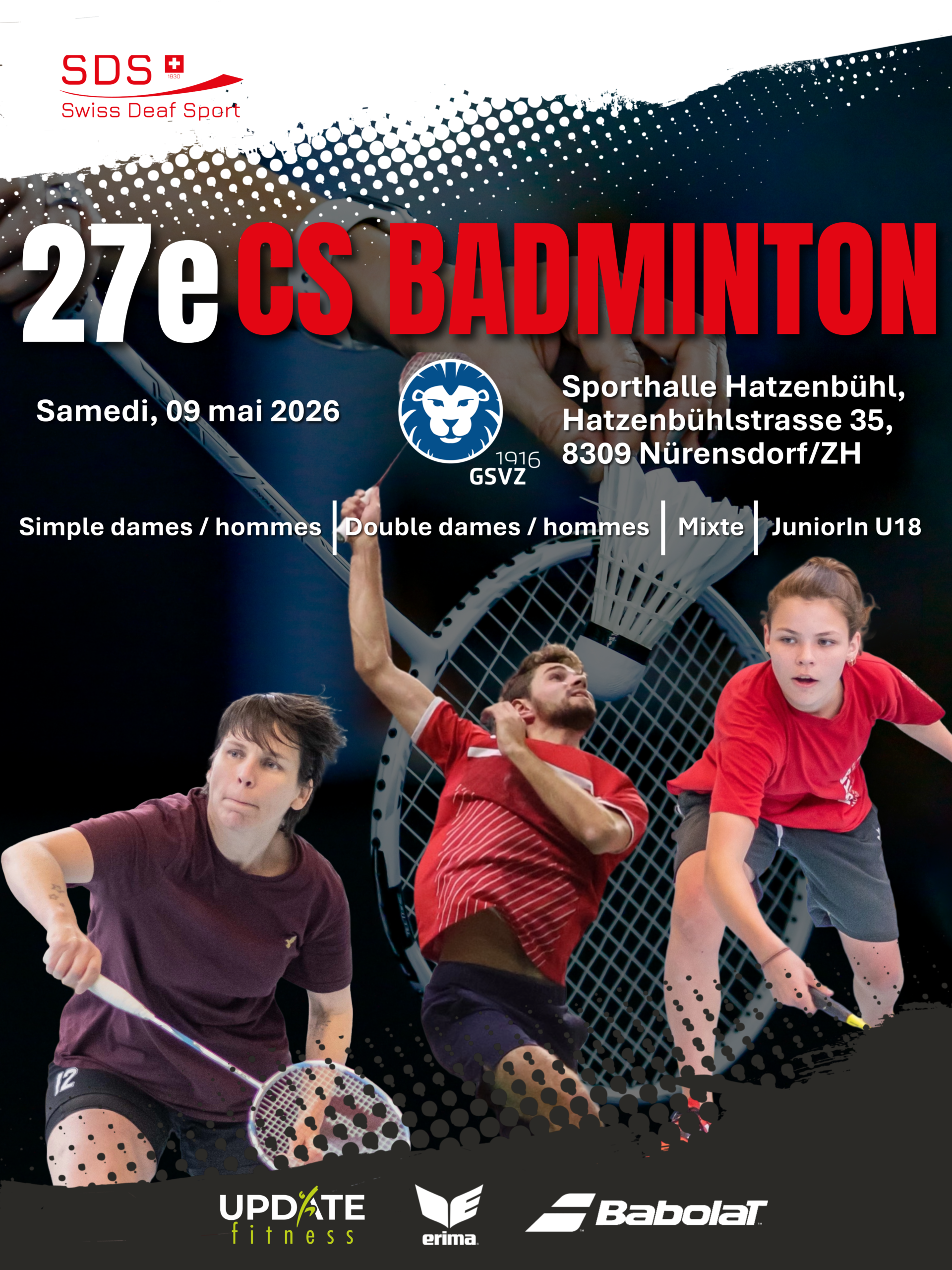 Swiss Deaf Sport et le GSV Zürich ont le plaisir de vous accueillir au 27e CS de badminton.
